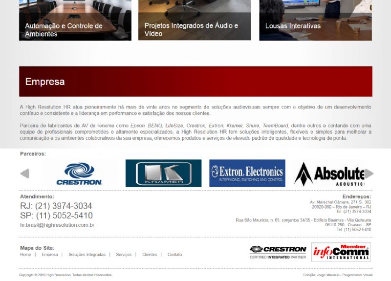Reformulação completa do site, juntamente com o sistema de gerenciamento de conteúdo. O sistema permite alteração de informações institucionais, inclusão de soluções, inclusão de fotos e vídeos do YouTube para cada solução, além de upload de arquivos em PDF para agregar valor à apresentação. Fizemos também uma área especial para inclusão de logomarca das empresas parceiras, em forma de carrossel com scroll, em JQuery.